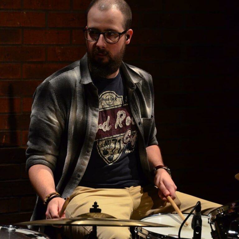 - Je débute la musique à 5 ans au CRR de Blois avec la flûte traversière . Après quelques années, je m’oriente vers la batterie et les percussions en parallèle. Je commencerai à donner des cours à partir de mes 18 ans, tout en passant mon DEM de musiques actuelles en batterie/percussions. J’obtiens mon diplôme à l’âge de 20 ans et commence à enseigner dans des écoles de musique. J’essaie d’être le plus complet possible dans ma pédagogie ; d’emmener les élèves dans des styles qu’ils n’auraient pas jouer en temps normal, en les sortant un peu de leur zone de confort en terme de technique, afin qu’ils voient vraiment à quel point ils progressent. A côté de l’enseignement, je développe plein de projets qui me permettent de me produire sur scène.
